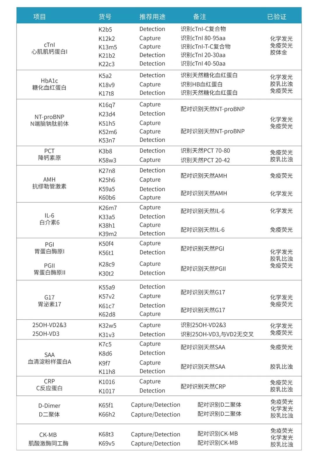 歐凱生物單抗均來源于細(xì)胞體外培養(yǎng),無鼠源抗體污染,無動(dòng)物蛋白污染?贵w產(chǎn)品應(yīng)用于免疫層析、膠體金、化學(xué)發(fā)光、免疫比濁等診斷平臺(tái),在線性、特異性、靈敏度、穩(wěn)定性等評(píng)估上表現(xiàn)出良好的性能。