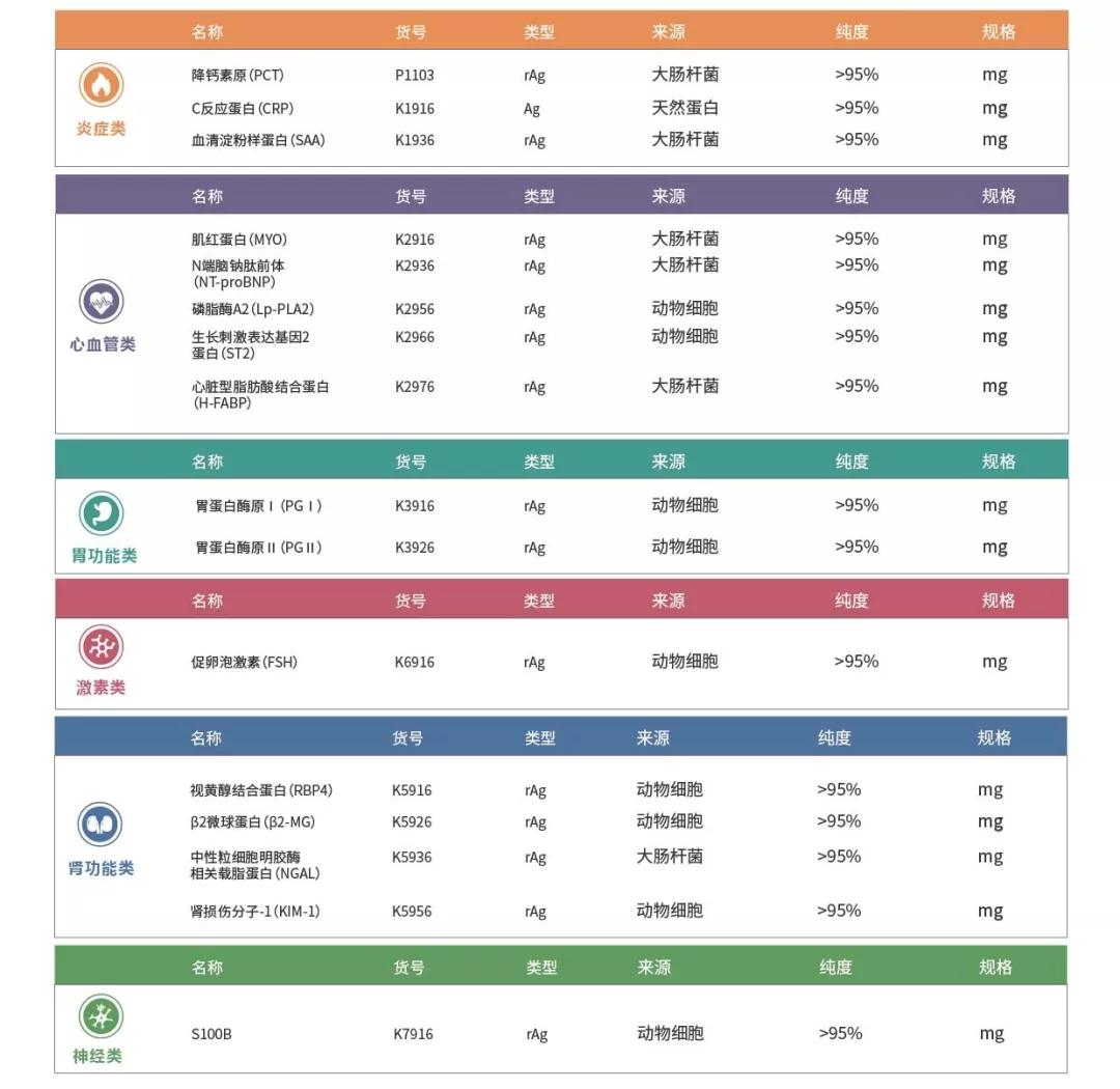 歐凱生物抗原原料大多采用哺乳動(dòng)物表達(dá)系統(tǒng)制備,結(jié)構(gòu)與活性更接近天然抗原。抗原產(chǎn)品主要應(yīng)用于標(biāo)準(zhǔn)品、校準(zhǔn)品、質(zhì)控品及免疫原等方面。每一個(gè)抗原的生產(chǎn)都是經(jīng)過嚴(yán)謹(jǐn)?shù)姆桨冈O(shè)計(jì)、嚴(yán)格的性能評(píng)估,在穩(wěn)定性、特異性等方面可以媲美國際原料供應(yīng)商。