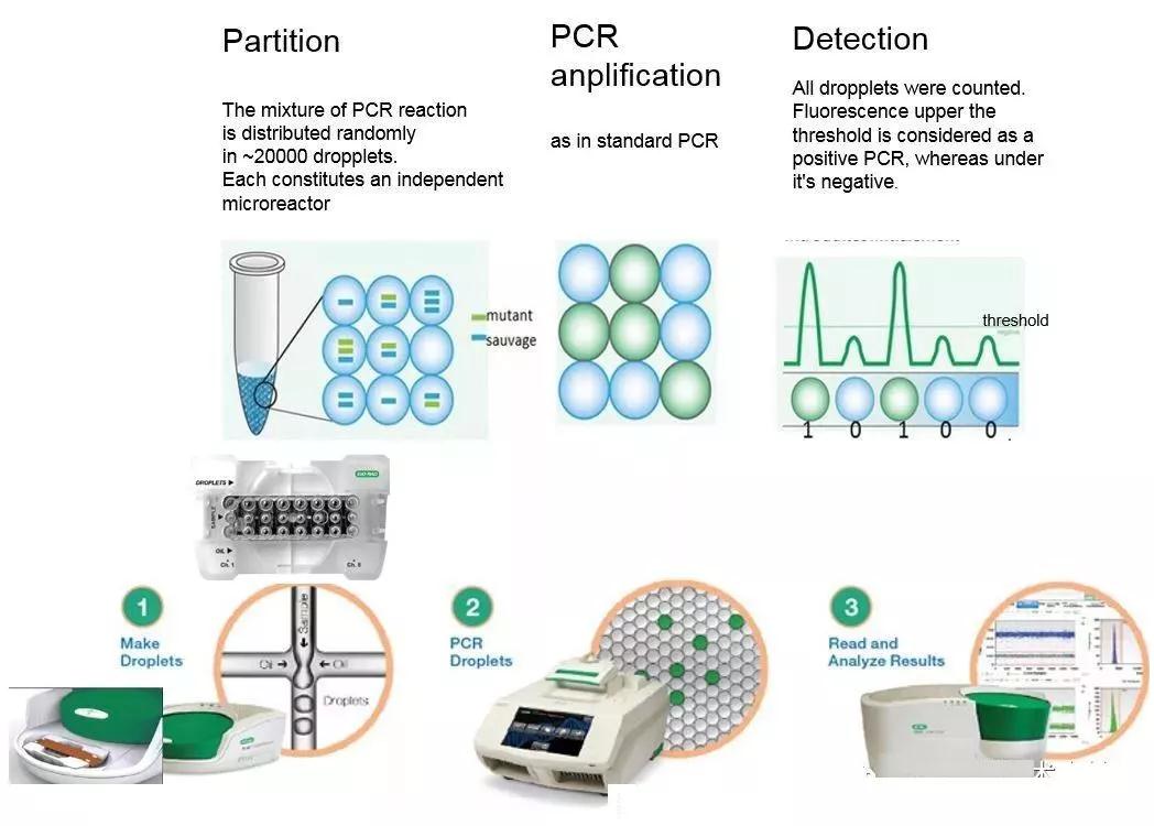 經(jīng)由Quantalife 公司開發(fā)( 已于2011 年被BIO-RAD 收購) 的微滴式數(shù)字PCR 是首款商品化的數(shù)字PCR 檢測系統(tǒng),目前已被廣泛運用于微量病原微生物基因檢測、低負荷遺傳序列鑒定、基因拷貝數(shù)變異與單細胞基因表達檢測等多個臨床前沿領(lǐng)域。與傳統(tǒng)qPCR 相比較,該技術(shù)具有超高的靈敏度與精密度,使其成為目前qPCR 領(lǐng)域的新星。